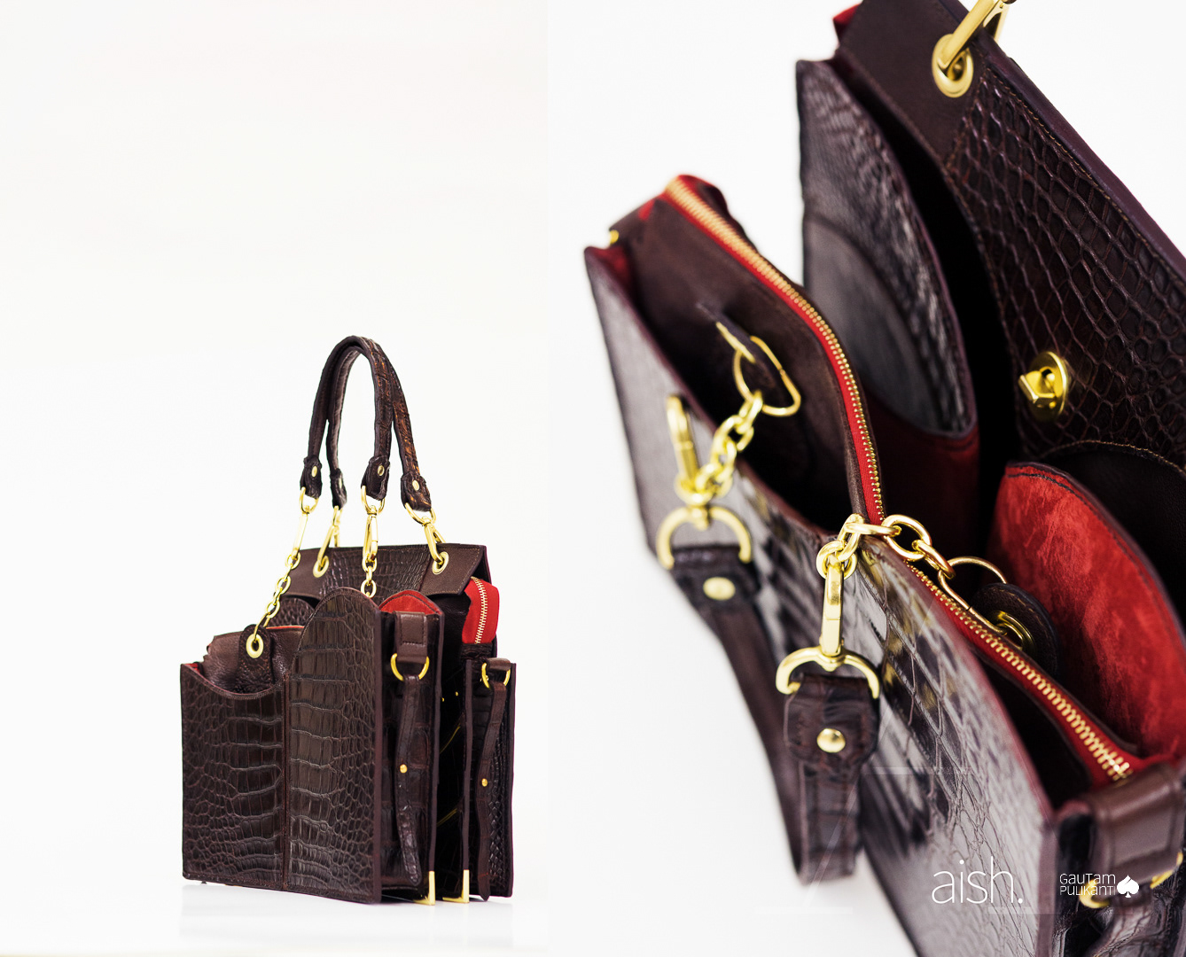 Photoshoot for accessory design major, Savannah college of Art and Design. The Objective was to Photograph a Luxury Bag, made out of hand by Accessory Design Department Student. This project gave me the opportunity to showcase my photography skills and also to design a brand logo. The word “Aishwarya” in Hindi means wealth and prosperity which are denoted by a leaf. I have tried to use the visual style from the leaf implementing onto the type and created the brand Identity.
